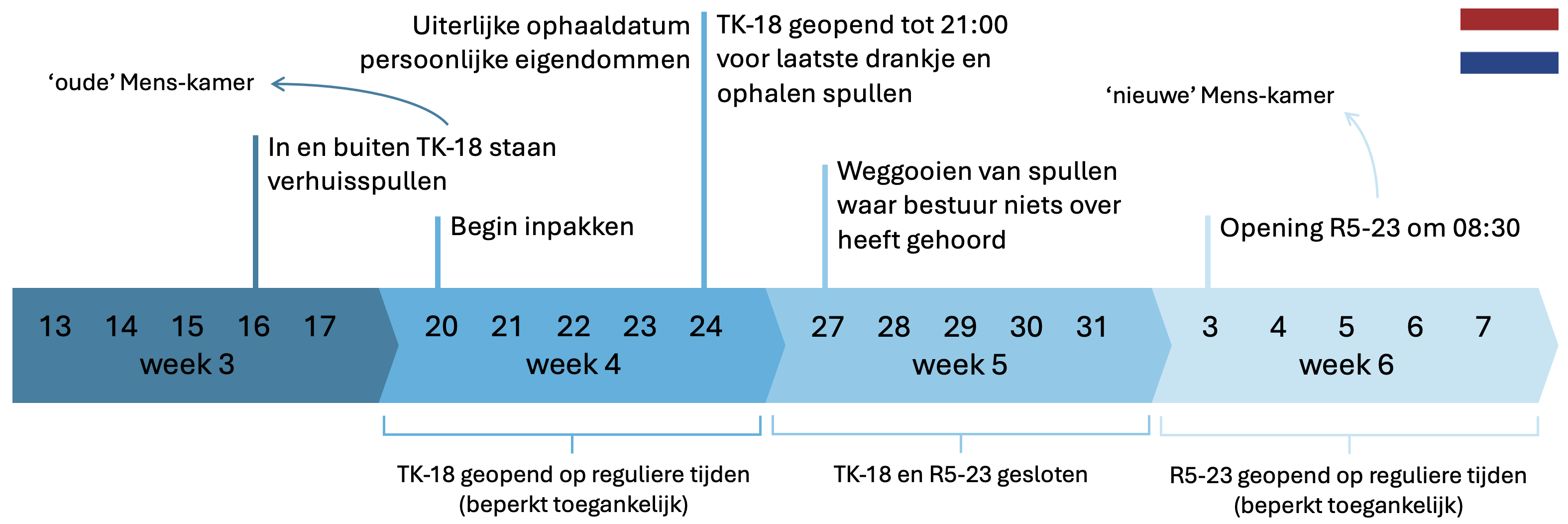 In week 4 (20 - 24 januari) blijft de Mens-kamer geopend. De Mens-kamer zal wel minder toegankelijk zijn.